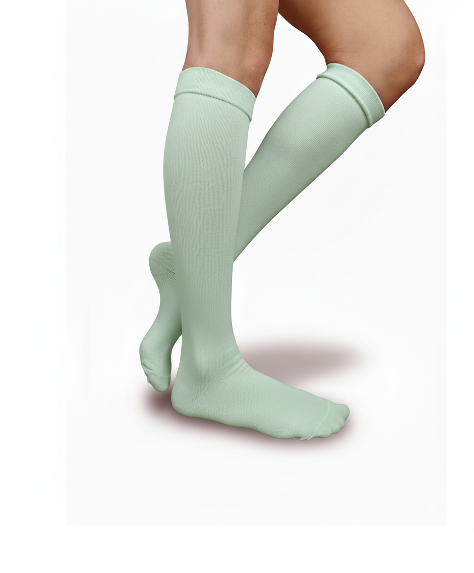 Con nuestras medias de compresión verde aqua, tendrás el apoyo ideal para mantener la energía y el bienestar durante toda tu jornada.