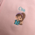 - Personalización Completa: Nombre con complemento en el pecho y bordado de ilustración con glitter en la espalda.