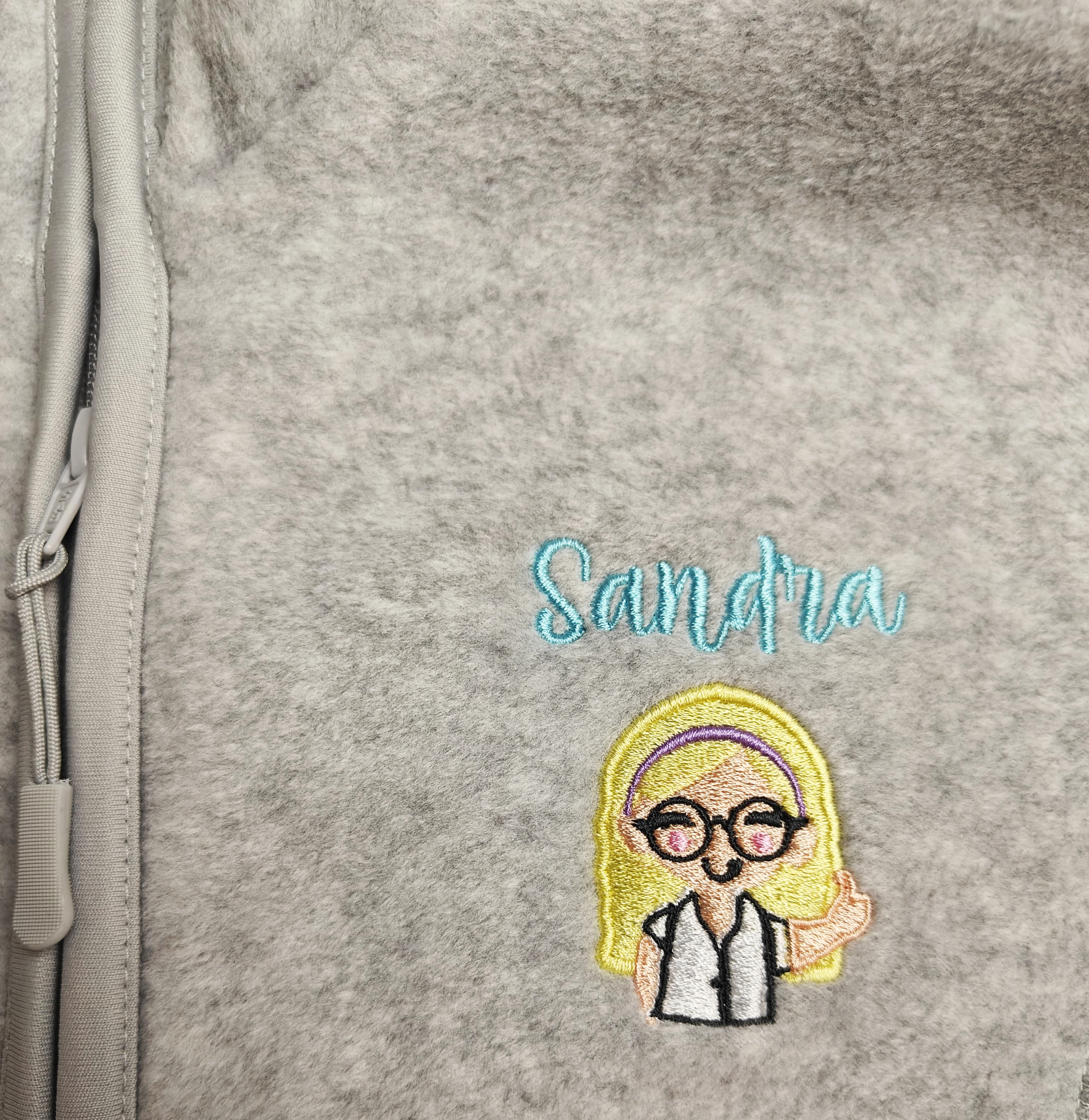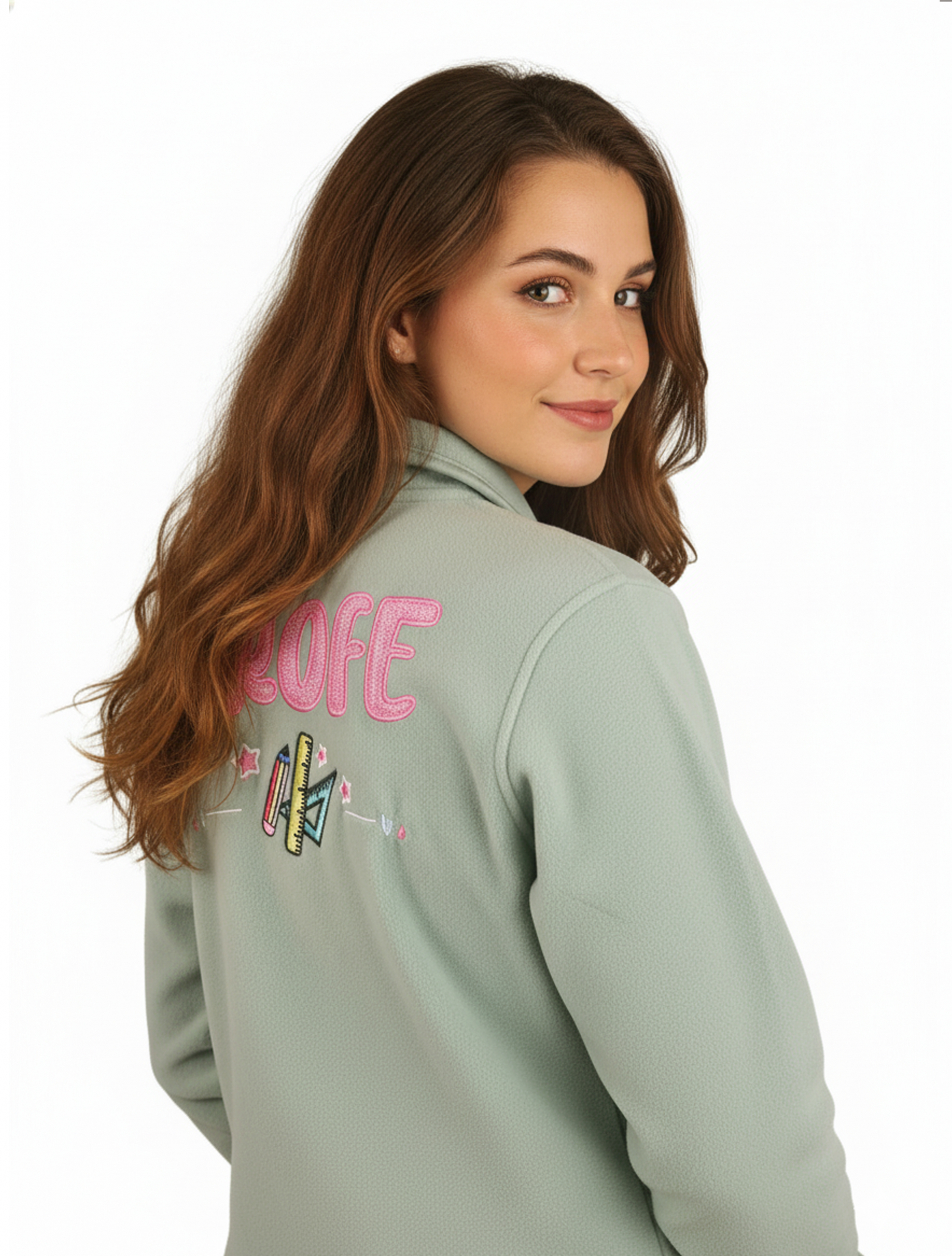 Polar para profesoras personalizable con tu avatar y categoría en glitter bordado: Elige un diseño único que refleje tu estilo cómo profe. Este polar está diseñado pensando en la comodidad y el estilo, perfecto para profes que quieren destacarse en el aula o cualquier actividad escolar.