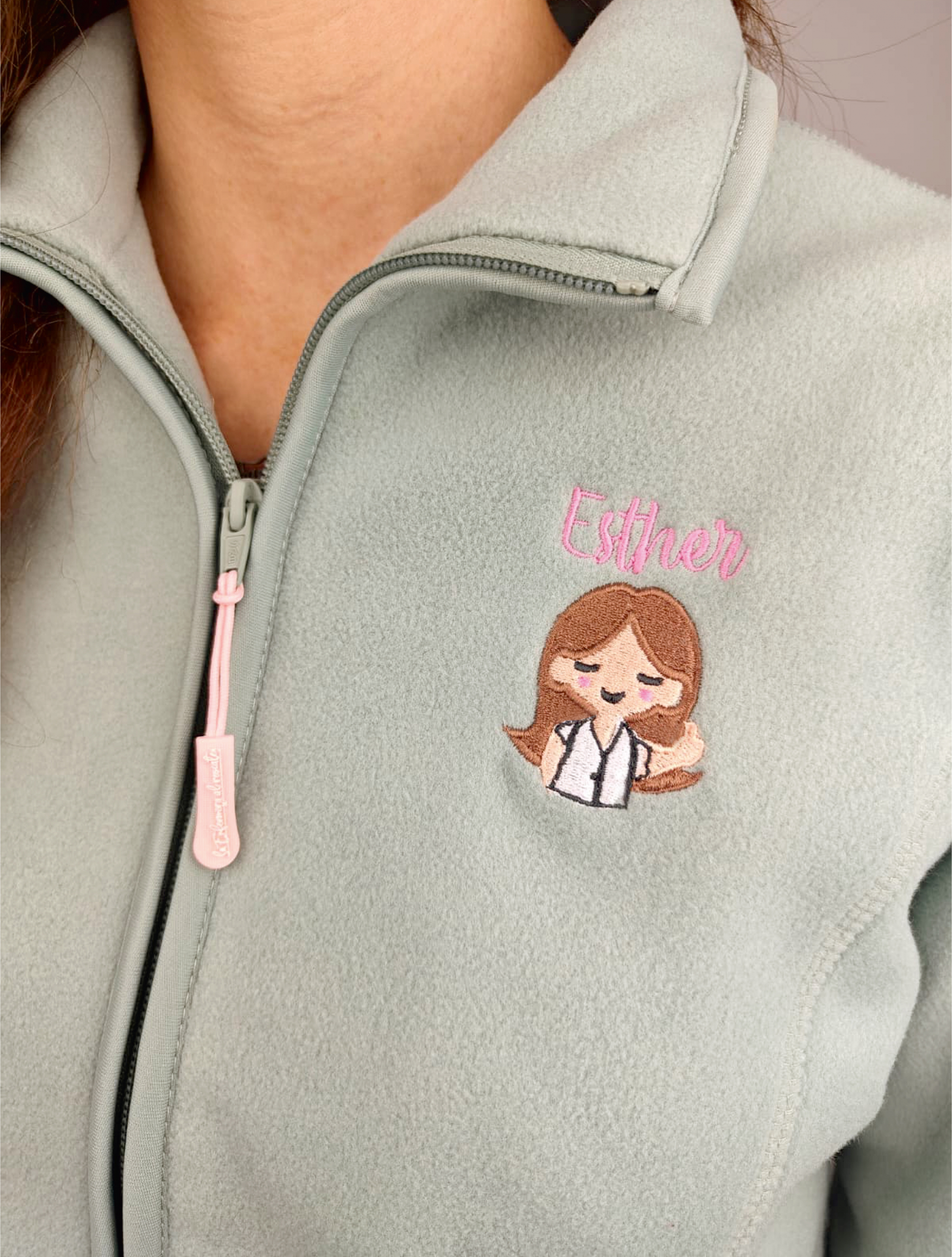 Confeccionado en tejido polar de alta calidad, es cálido, ligero, súper transpirable suave y resistente, ideal para jornadas largas y climas fríos y de entretiempo. El detalle más especial es el avatar bordado, completamente personalizable a tu gusto. Gracias al bordado realizado en nuestro taller de manera profesional, el diseño mantiene su elegancia y durabilidad a lo largo del tiempo.